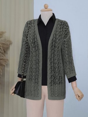 Podyumplus Haki Yarım Kol Ajurlu Kısa Hırka