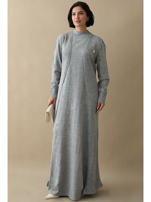 InStyle Broş Detay Yelekli Gri Triko Takım