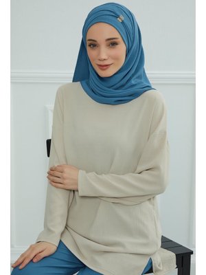 Aisha`s Design İndigo Aksesuar Detaylı Aerobin Şal,cps