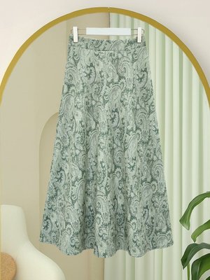 Podyumplus Yeşil Beli Lastikli Etnik Desen Kloş Etek