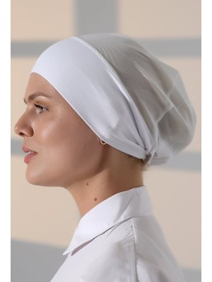 İhvanonline Nefes Alabilen Tüllü Dikişsiz Likralı Viskon Bone Beyaz