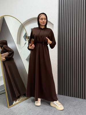 Ensa Tesettür Kapüşonlu Elbise Kahve