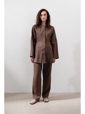 MANUKA Keten Oturtmalı Ceket Tozlu Kahve