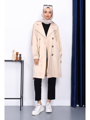 İmaj Butik Bej Kruvaze Yaka Trençkot