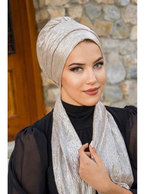 AİŞE TESETTÜR Gold Piliseli Abiye Atkılı Bone