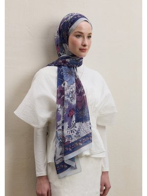 FRESHSCARFS Lavanta Dahlıa Desen İpek Krep Şal