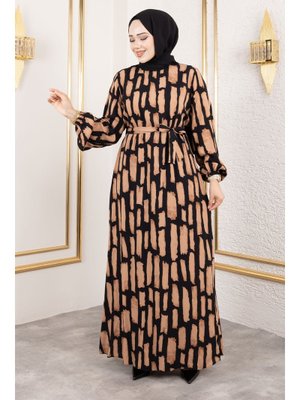 Tesettür Dünyası Taba Bisiklet Yaka Viskon Elbise