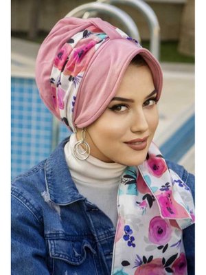 AİŞE TESETTÜR Çiçek Fularlı Şapka Bone