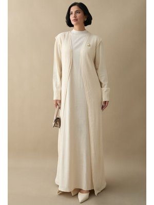 InStyle Broş Detay Yelekli Ekru Triko Takım