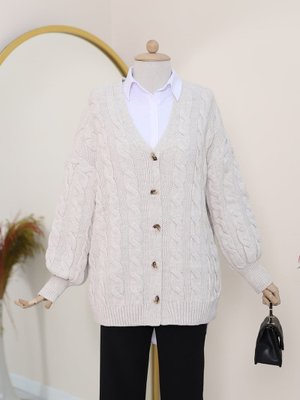 Podyumplus Taş Saç Örgülü Düğmeli Triko Hırka