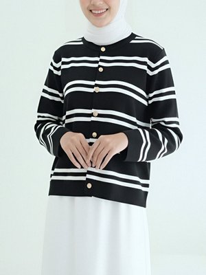 Podyumplus Siyah Parlak Düğmeli Çizgili Triko Hırka