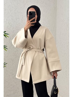 Salih Çelebi Ekru V Yaka Kaşe Kaban