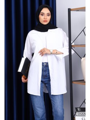 İmaj Butik Beyaz Düz Terikoton Salaş Gömlek