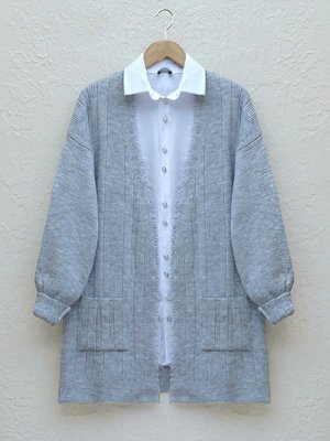 Podyumplus Gri Püskül Detaylı Cepli Triko Hırka