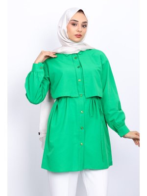 İmaj Butik Yeşil Ön Detaylı Poplin Tunik