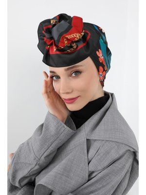 Aisha`s Design Desen V1 Arkadan Bağlanabilir Desenli Saten Bone Türban,db