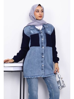 İmaj Butik Lacivert Kot Garnili Triko Hırka