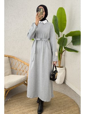 Salih Çelebi Gri İki İplik Kuşaklı Elbise