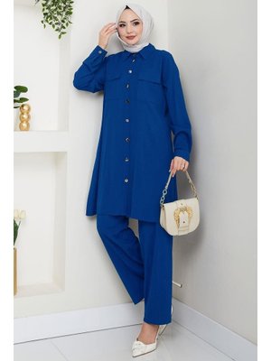Hafsa Mina İndigo Çift Cepli Gömlekli İkili Takım