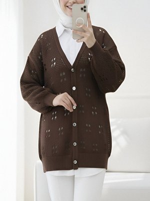 Podyumplus K. Kahve Düğmeli Ajurlu Araboy Triko Hırka