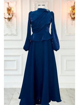 Amine Hüma Lacivert Gaye Abiye Elbise