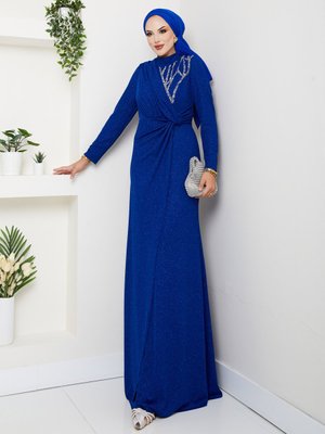 Semra Aydın Saks Mavi Eylül Abiye Elbise