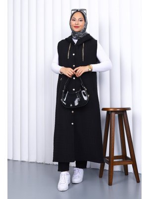 İmaj Butik Siyah Kapüşonlu Kapitone Uzun Yelek