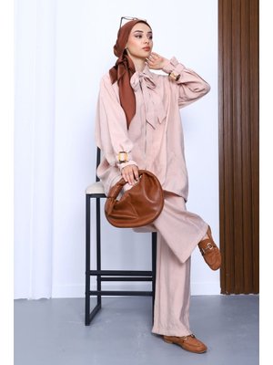 İmaj Butik Bej Fermuarlı Modal Tunik Pantolonlu Takım