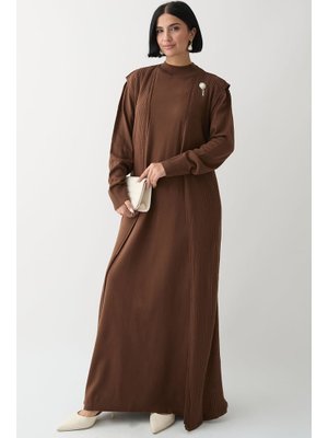 InStyle Broş Detay Yelekli Acı Kahve Triko Takım