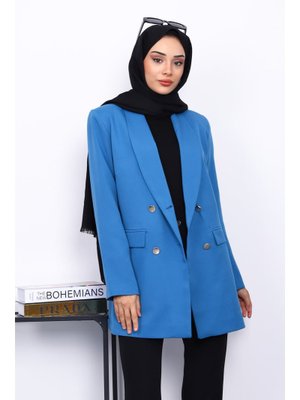 İmaj Butik İndigo Düğmeli Kruvaze Yaka Krep Ceket