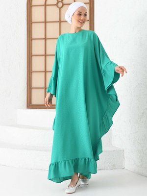 Filizzade Yeşil Kendinden Puantiye Desenli Ferace