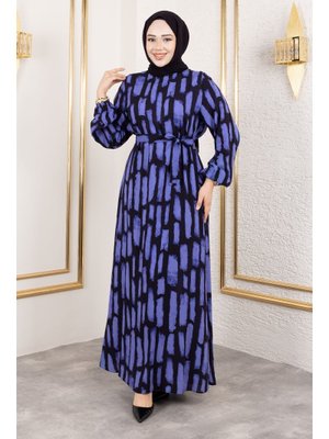 Tesettür Dünyası Mor Bisiklet Yaka Viskon Elbise