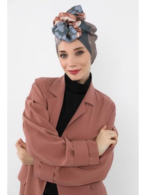Aisha`s Design Desen V1 Arkadan Bağlanabilir Desenli Saten Bone Türban,db