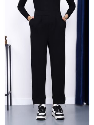 İmaj Butik Siyah Paça Fermuarlı Cepli Modal Pantolon