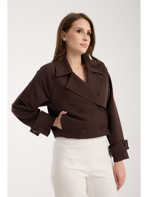 Bolivente Kruvaze Yaka Crop Trençkot Acı Kahve