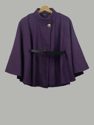 Nergis Neva Kaşe Gold Düğmeli Deri Kemerli Panço