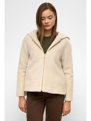 Olcay Bej Kapüşonlu Fermuar Detaylı Oversize Kısa Kaban