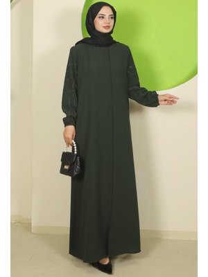 Hafsa Mina Haki Kolları Taşlı Büyük Beden Ferace