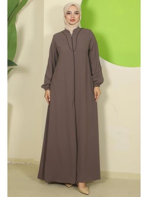 Hafsa Mina Kahverengi Biye Detaylı Ferace