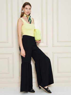 Pasaklı Giyim Siyah Paçası Büzgü Detaylı Aerobin Kumaş Beli Lastikli Rahat Kesim Pantolon