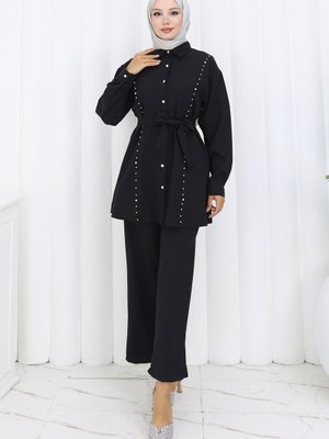 Modamihram Siyah İncili Kuşaklı İkili Takım