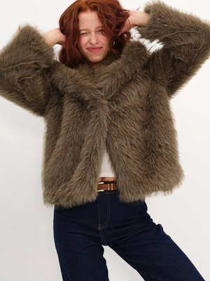 Rabi Shine Kahverengi Şal Yaka Suni Kürk Mont