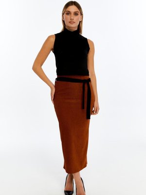 APSEN Kiremit Uzun Kadife Suvet Kuşak Detaylı Kışlık Kalem Etek