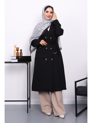 İmaj Butik Siyah Kuşaklı Cep Detaylı Kapitone Kaban