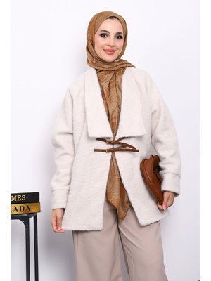 İmaj Butik Bej Kemer Detaylı Kaşe Kaban