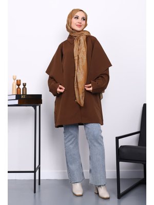 İmaj Butik Kahverengi Pelerin Detaylı Düğmeli Trençkot