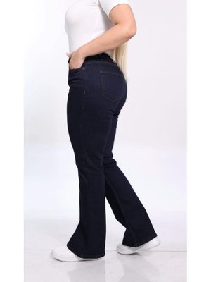 IŞŞIL Esnek İspanyol Paça Büyük Beden Kot Pantolon Koyu Mavi