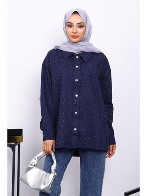 İmaj Butik Lacivert Taşlı Gabardin Gömlek