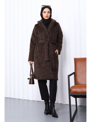 İmaj Butik Kahverengi Düğmeli Uzun Cepli Kürk Kaban