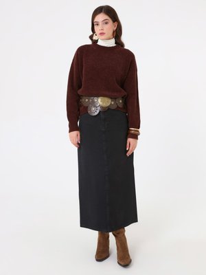 Refka Antrasit Doğal Kumaşlı Cep Detaylı Kot Etek